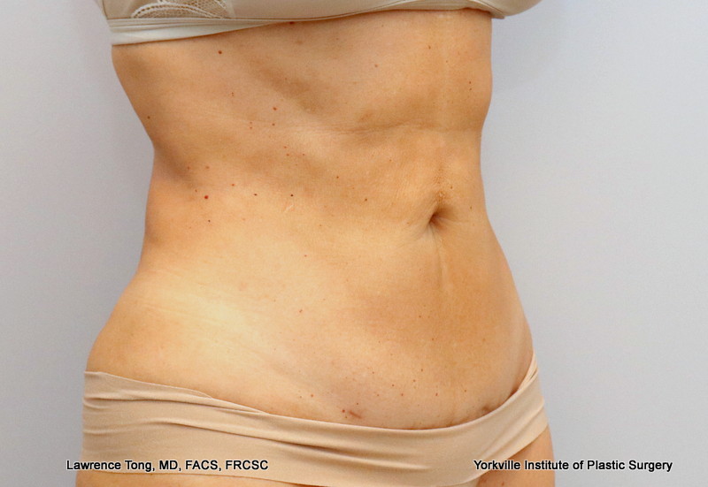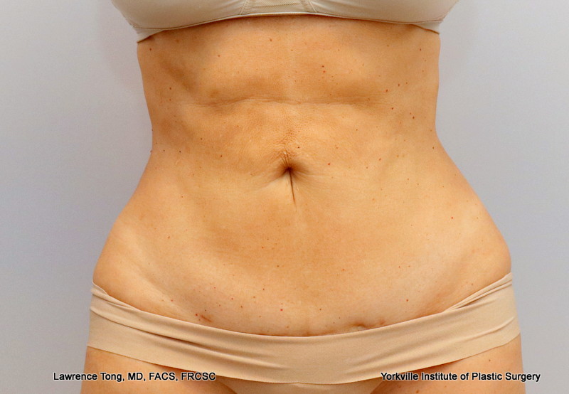 This patient underwent liposuction of the abdomen and flanks (love handles). Her result is shown 6 months after surgery.