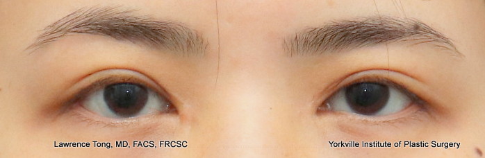 This patient underwent an Asian double fold blepharoplasty. Her result is shown 6 months after surgery.